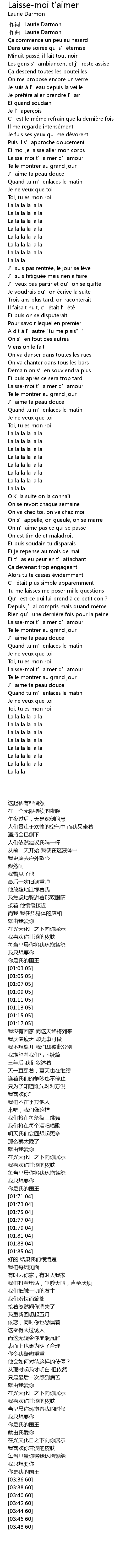 | [03:18.30] | Laissemoi t' aimer d' amour |