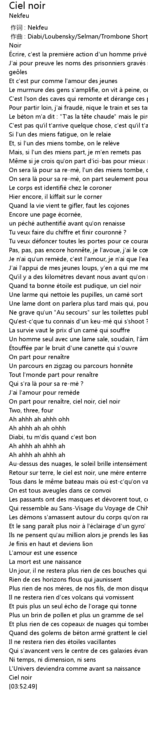 | [02:13.71] | On part pour renaître, ciel noir, ciel noir |