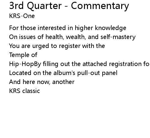 | Song | 3rd Quarter - Commentary |