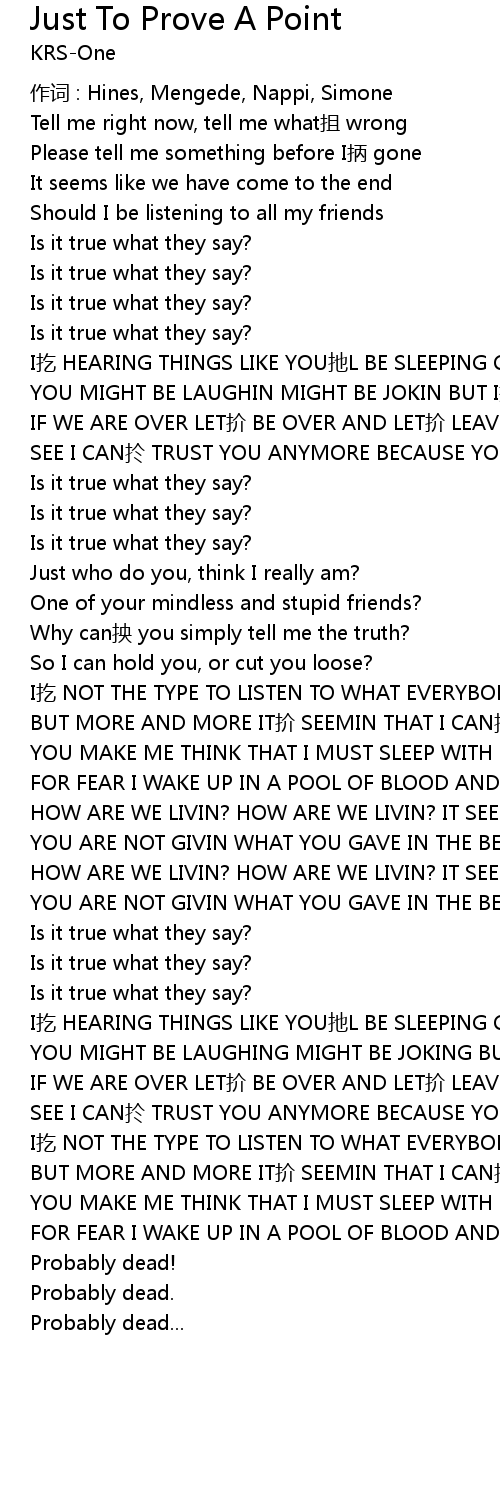| I gǔ HEARING THINGS LIKE YOU tuō L BE SLEEPING CREEPING BEHIND MY BACK | |