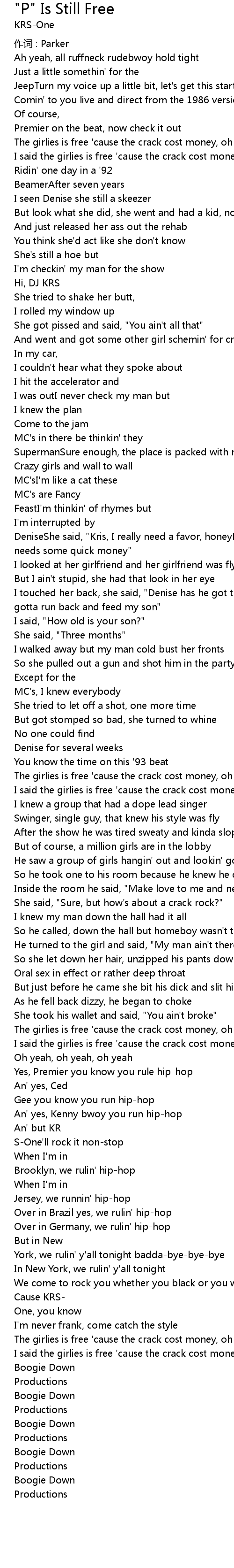 | The girlies is free 'cause the crack cost money, oh yeah | |