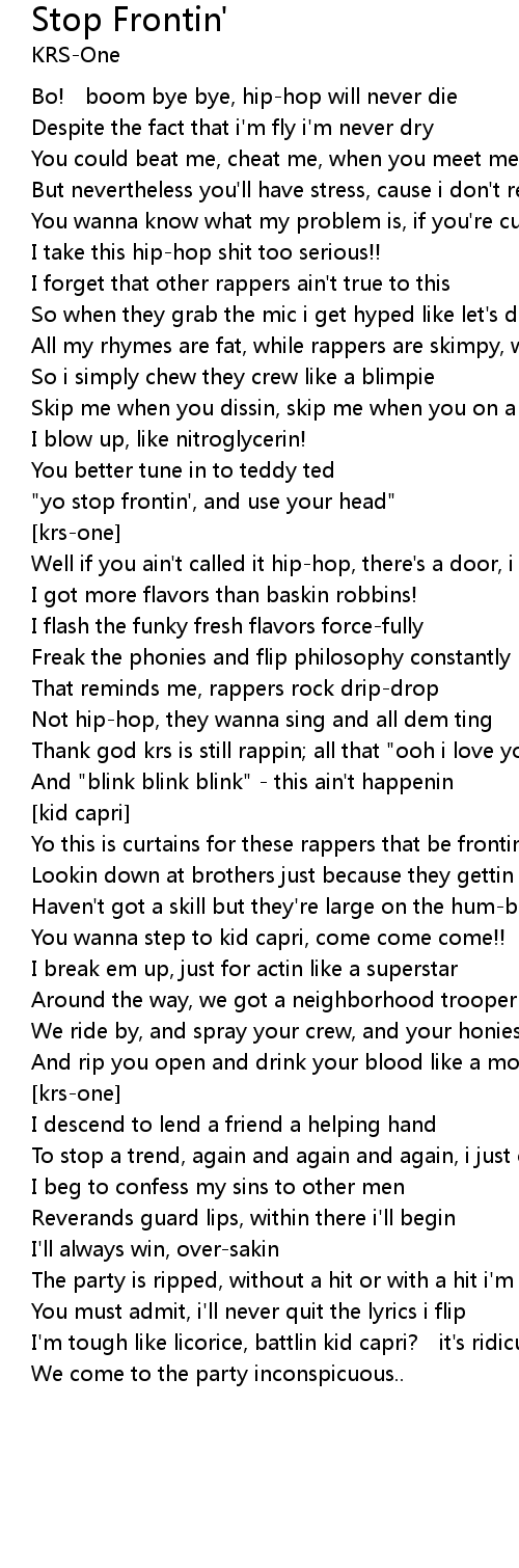 | Thank god krs is still rappin; all that "ooh i love you baby" | |