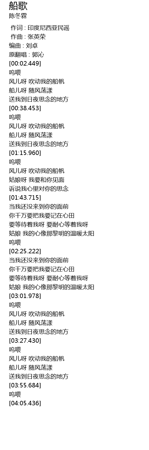 | [03:15.480] | 船儿呀 随风荡漾 |