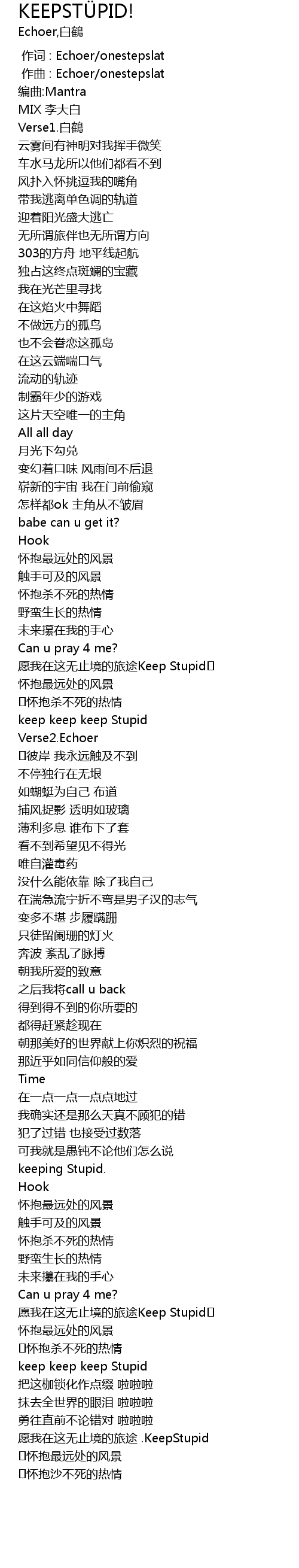 | [02:22.682] | 愿我在这无止境的旅途Keep Stupid |