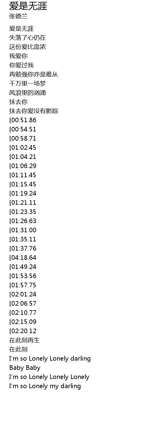| [02:58.79][01:06.29] | 我发觉爱是无涯 |