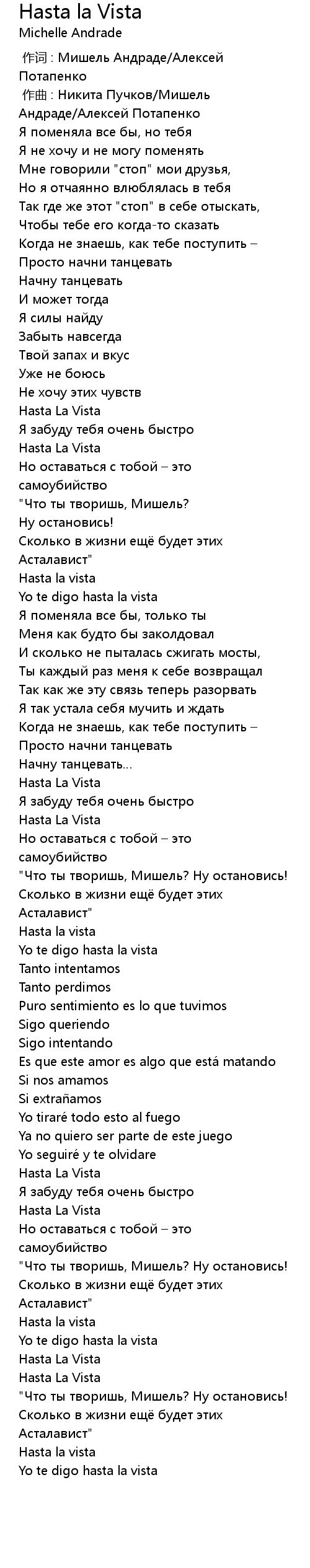 | [00:00.000] | 作词 : Мишель Андраде/Алексей Потапенко |