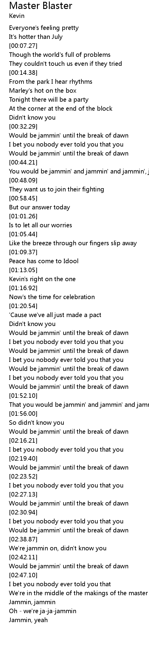 [02:53.97] Jammin, jammin