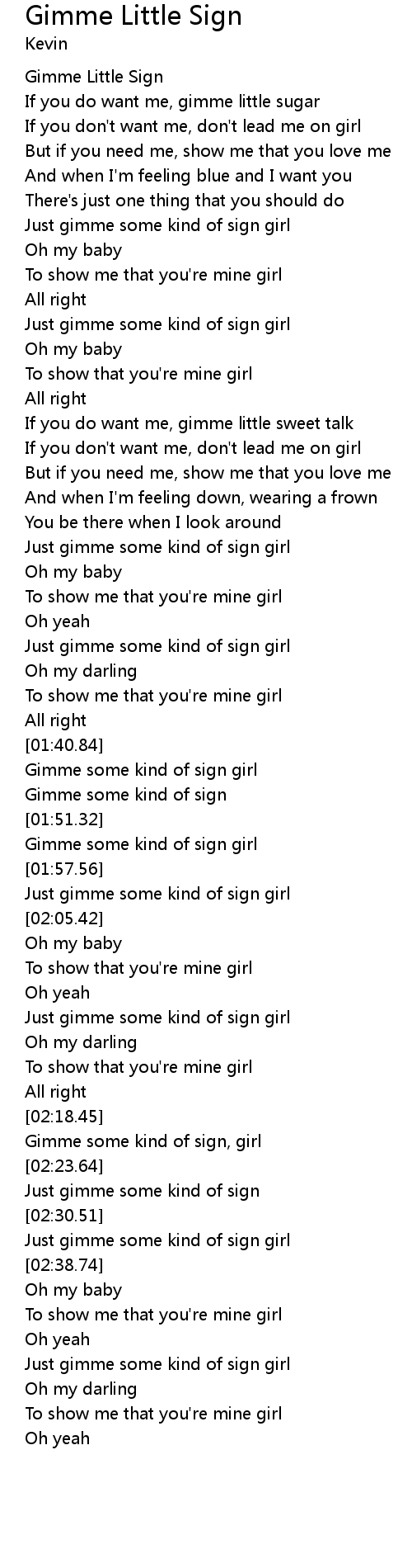 | [00:00.89] | Gimme Little Sign |