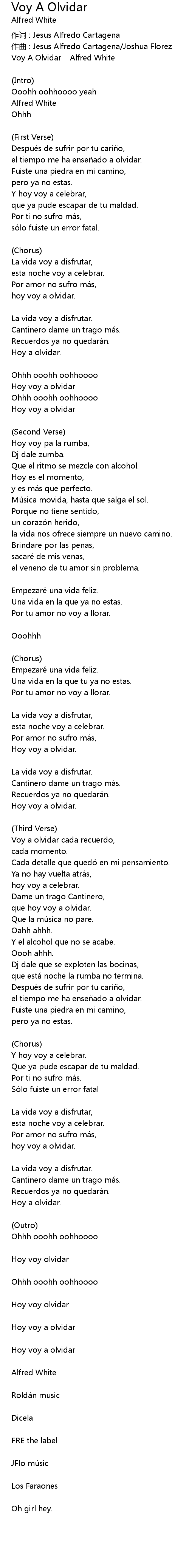 | Voy A Olvidar Alfred White | |