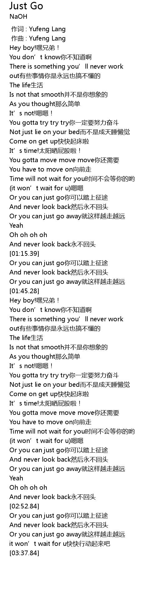 | [02:14.60] | You gotta move move move ni hai xu yao |