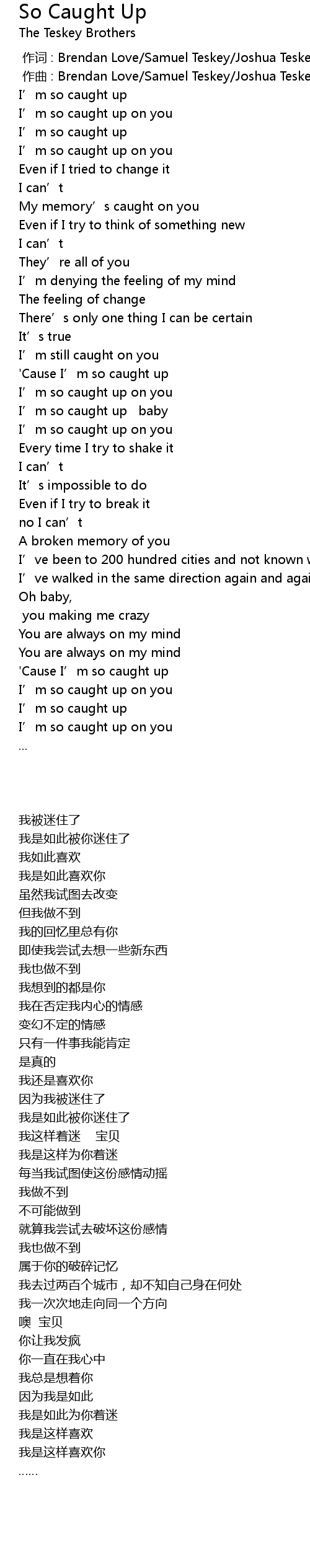 | [00:34.27] | I' m so caught up on you |