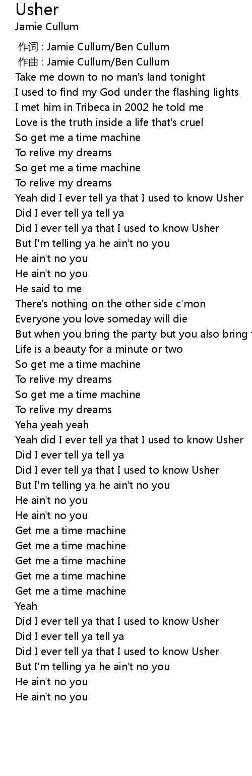 | [01:36.02] | Yeah did I ever tell ya that I used to know Usher |