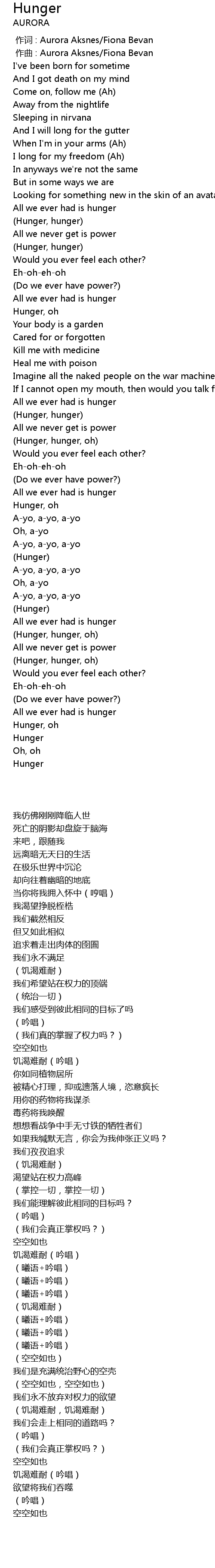 | [02:06.27] | (Hunger, hunger, oh) |