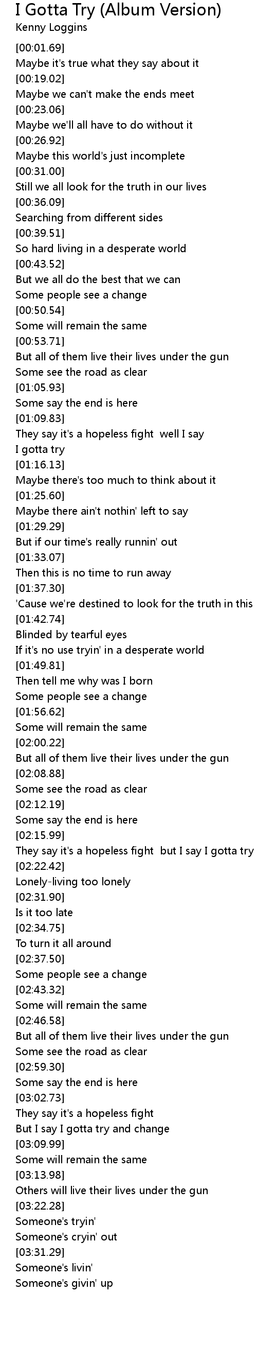 They say it's a hopeless fight but I say I gotta try |