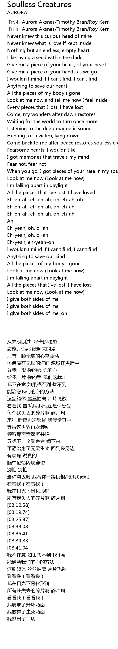 | [00:00.000] | zuo ci : Aurora Aksnes Timothy Bran Roy Kerr |