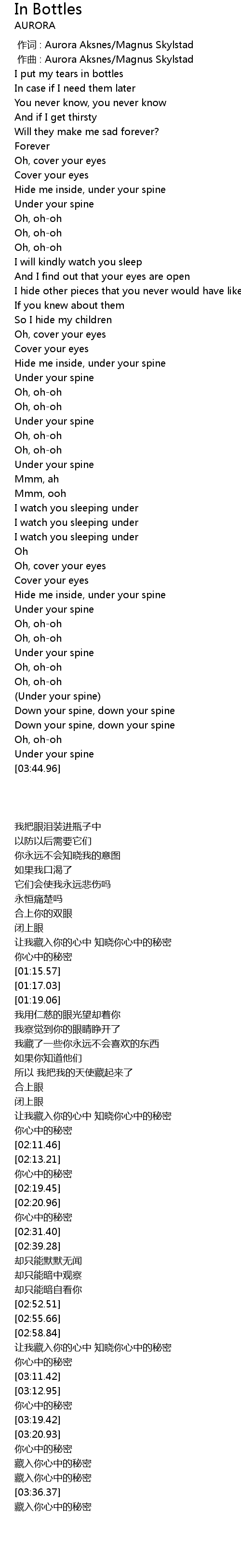 | [00:01.000] | zuo qu : Aurora Aksnes Magnus Skylstad |