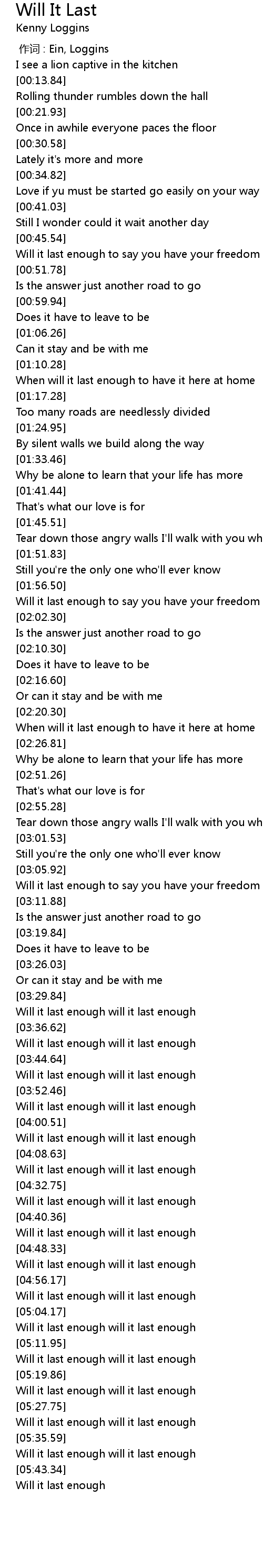 | [01:57.58] | Will it last enough to say you have your freedom |