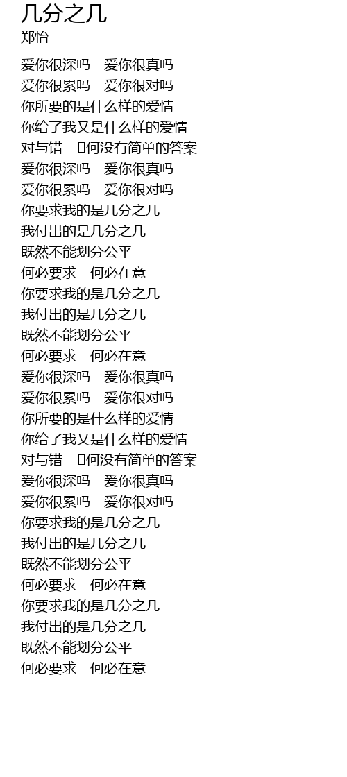| [01:50.15] | wǒ fù chū de shì jǐ fēn zhī jǐ |