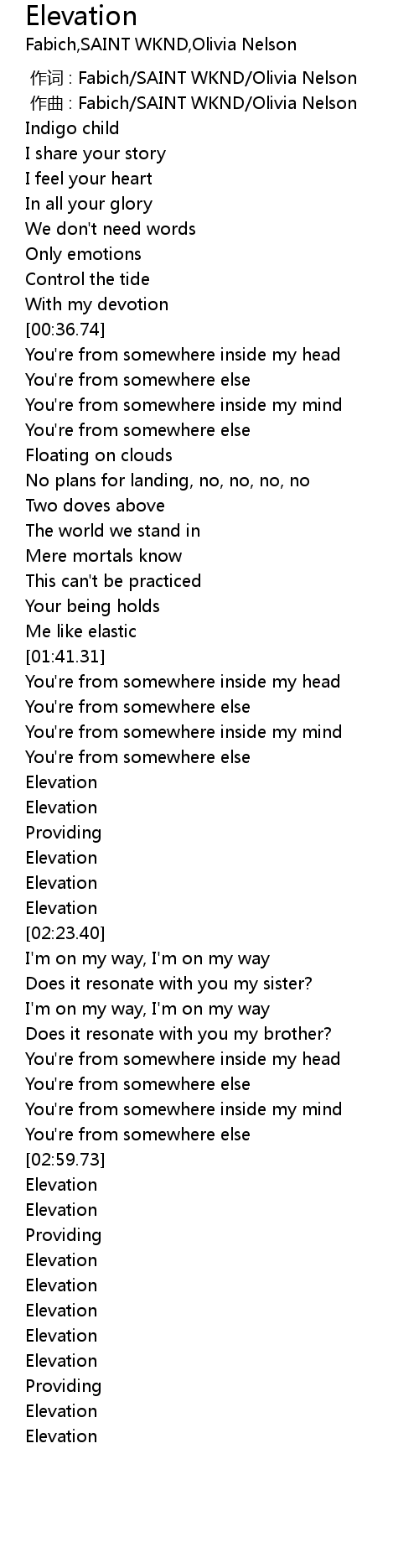 | [00:00.000] | zuò cí : Fabich SAINT WKND Olivia Nelson |