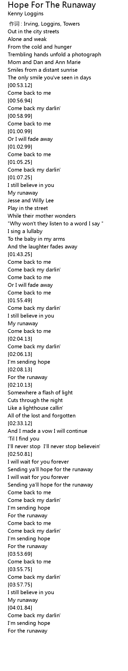 | [03:56.37] | Come back my darlin' |