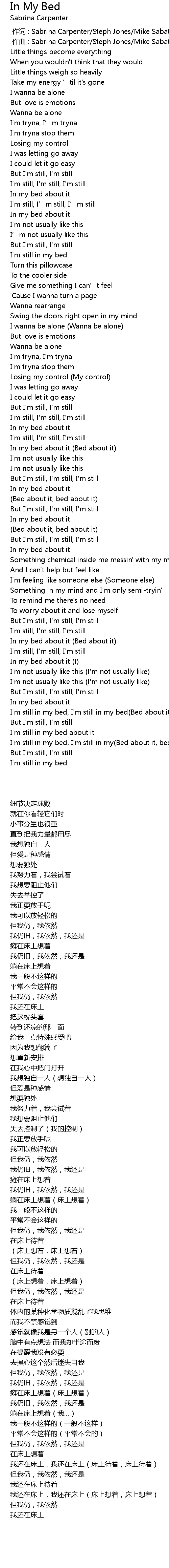 | [02:48.01] | I' m still in my bed, I' m still in my bed Bed about it, bed about it |