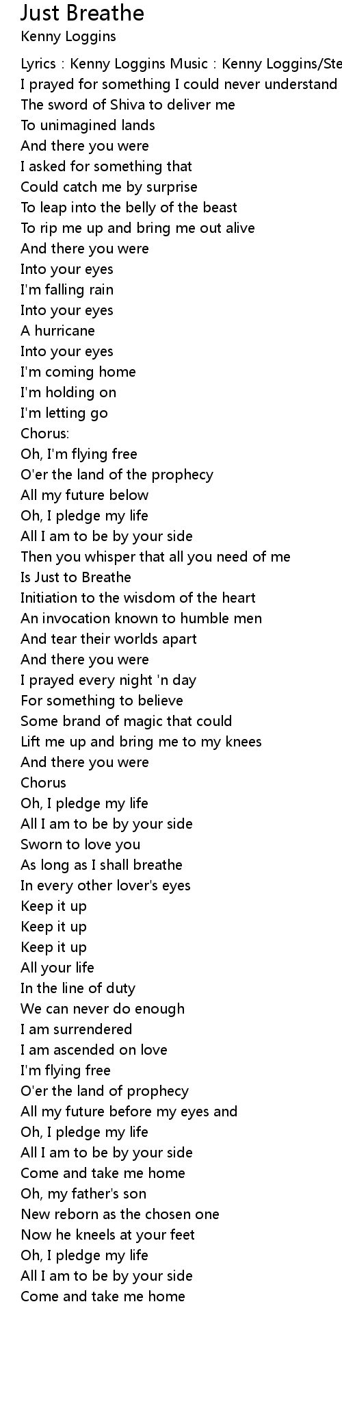 | Lyrics:Kenny Loggins Music:Kenny Loggins/Steve George | |