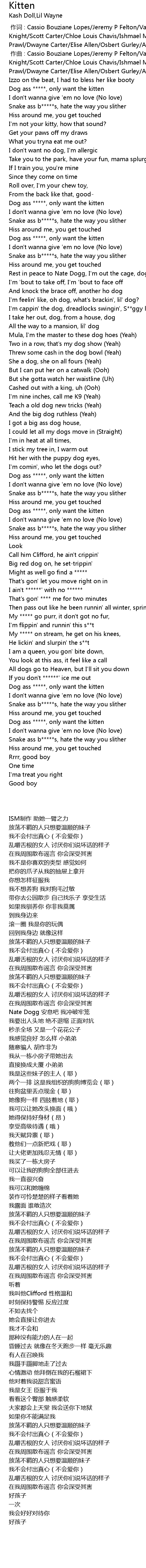 | [00:11.97] | Dog ass , only want the kitten |