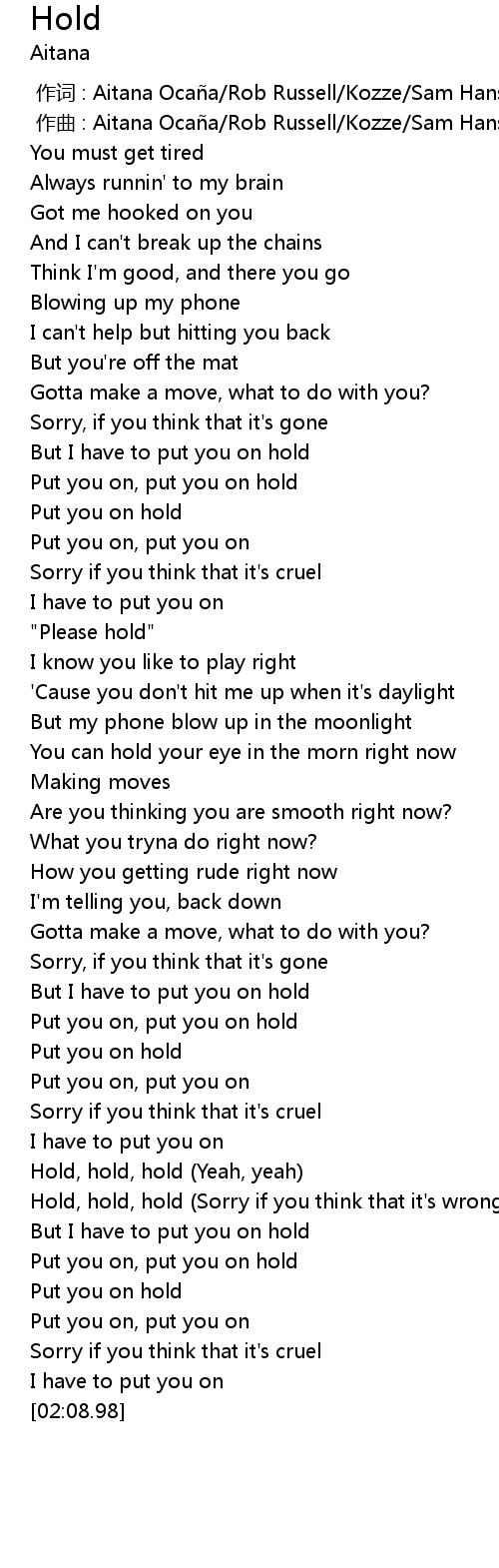 | [01:32.83] | Hold, hold, hold (Yeah, yeah) |
