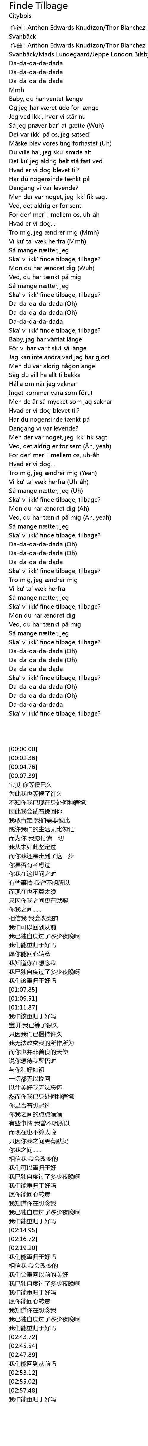 | [00:55.06] | Ska' vi ikk' finde tilbage, tilbage? |