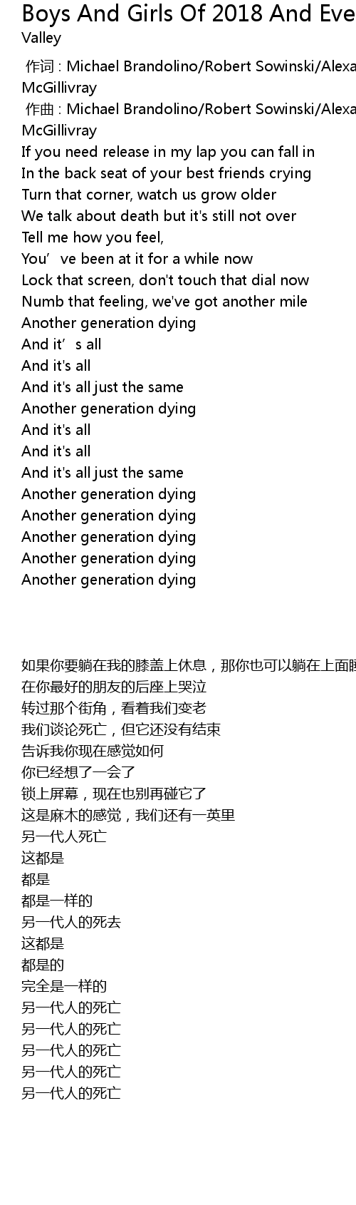 | Song | Boys And Girls Of 2018 And Everything In Between |