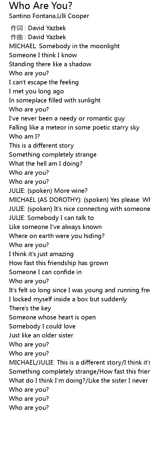 | [00:08.438] | MICHAEL: Somebody in the moonlight |