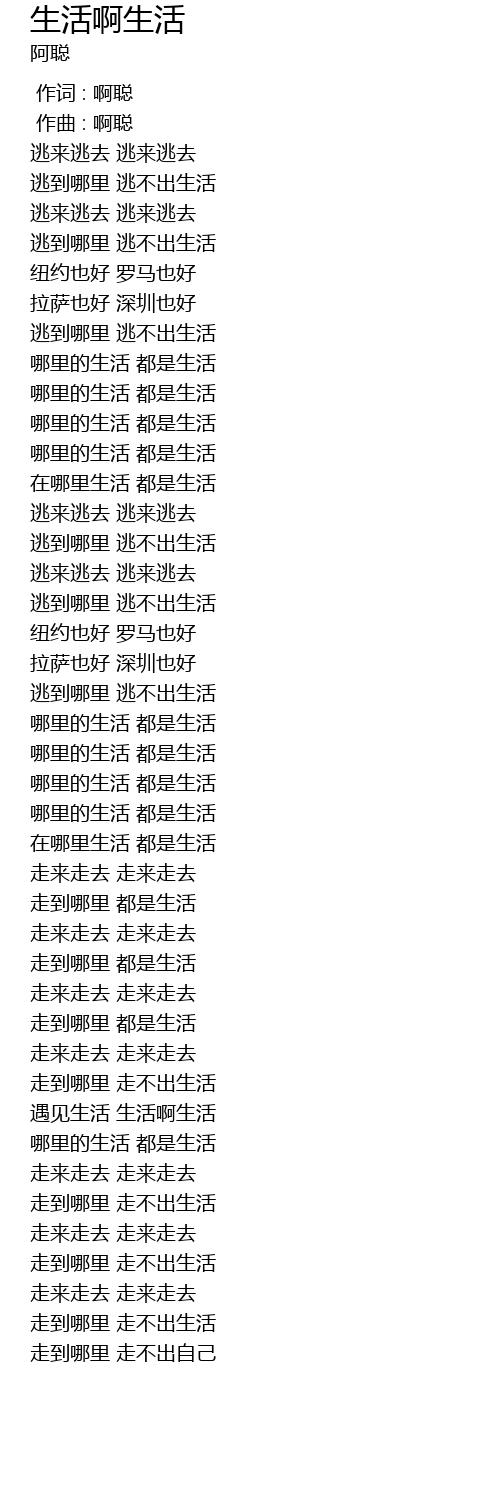 | [01:46.000] | 逃到哪里 逃不出生活 |