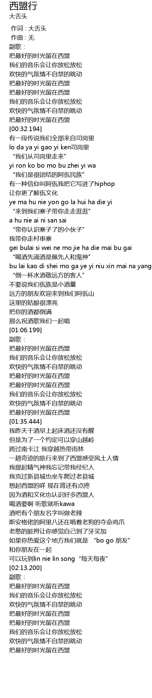 | [00:00.000] | 作词 : 大舌头 |