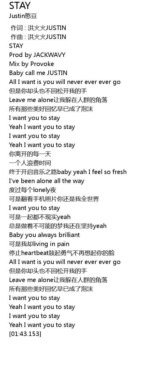 | [00:00.000] | 作词 : 洪火火JUSTIN |