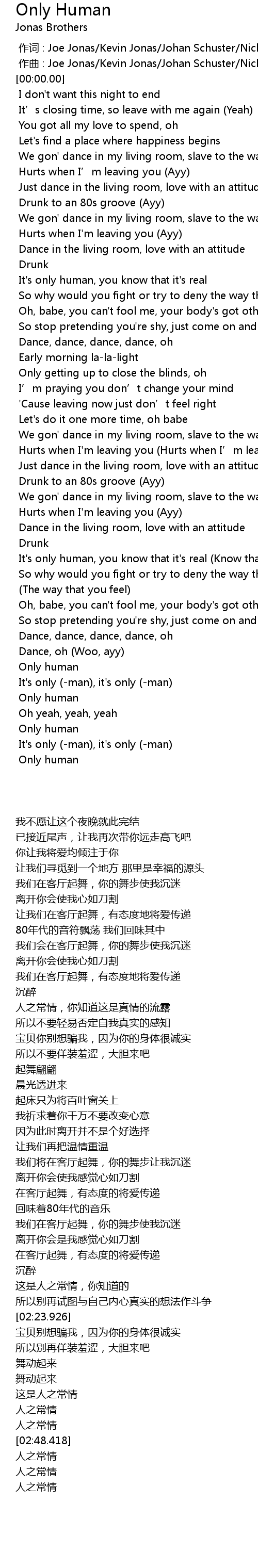 | [02:15.010] | It' s only human, you know that it' s real Know that it' s real |