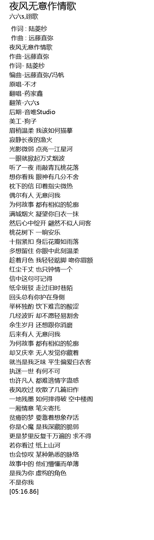 | [00:03.31] | ye feng wu yi zuo qing ge |