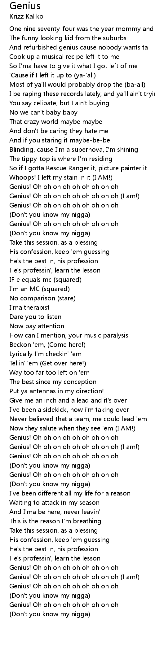 Genius! Oh oh oh oh oh oh oh oh oh |