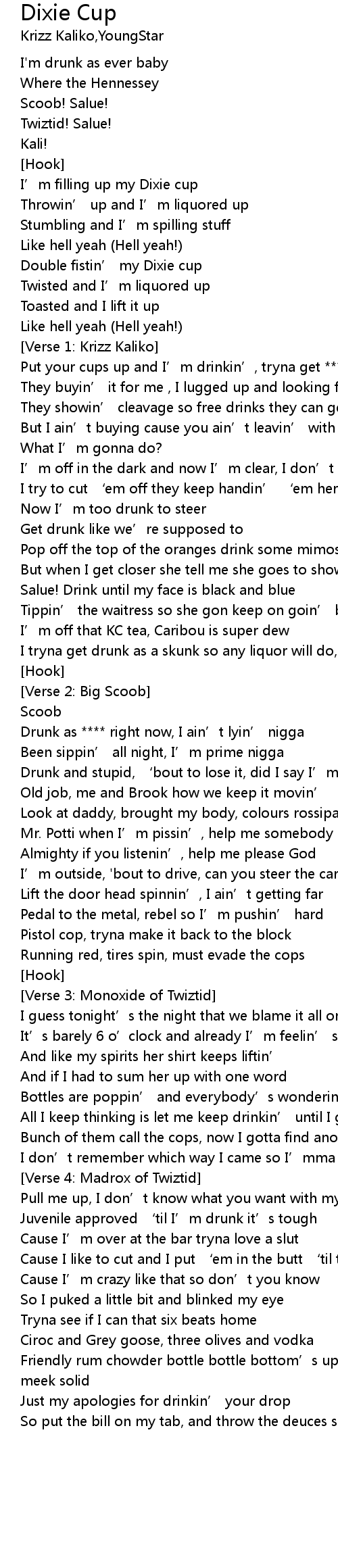 | Pull me up, I don' t know what you want with my Dixie cup | |