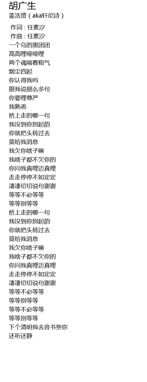 | [00:00.000] | 作词 : 任素汐 |