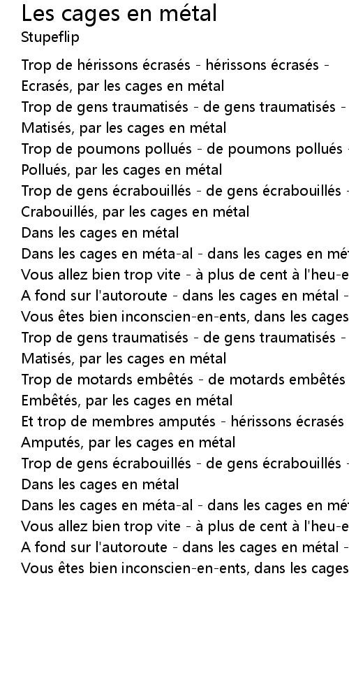 | Song | Les cages en métal |