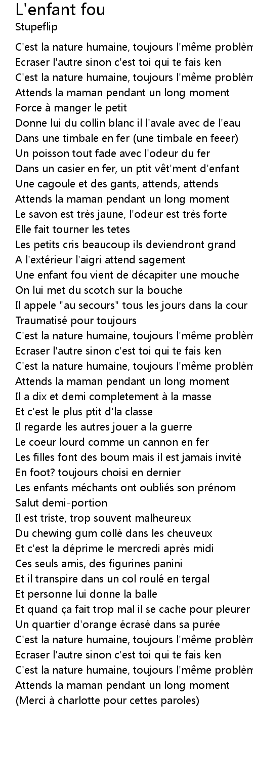| Et quand a fait trop mal il se cache pour pleurer | |
