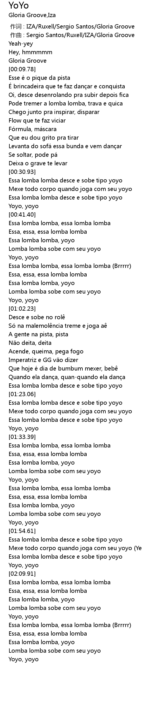 | [01:20.61] | Essa lomba lomba desce e sobe tipo yoyo |