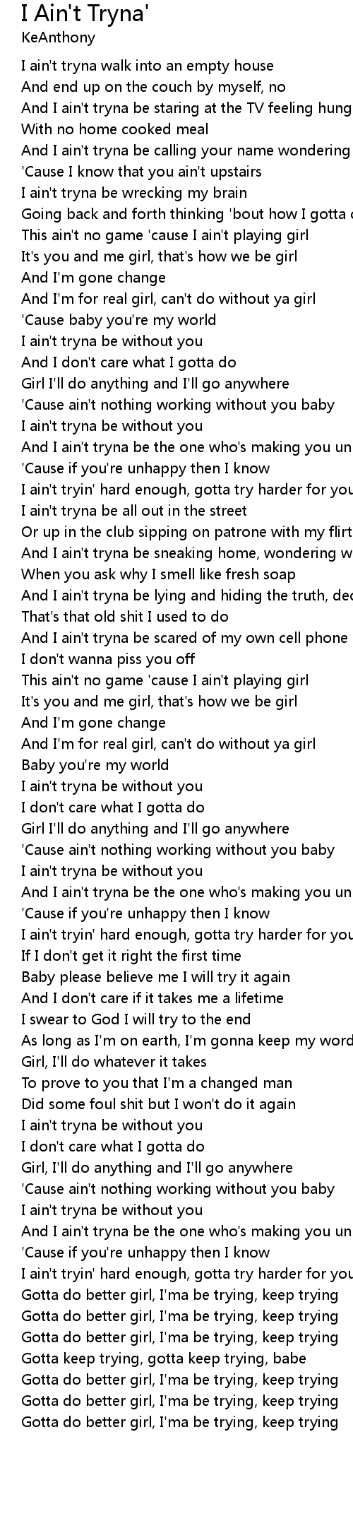 I Ain't Tryna' Lyrics