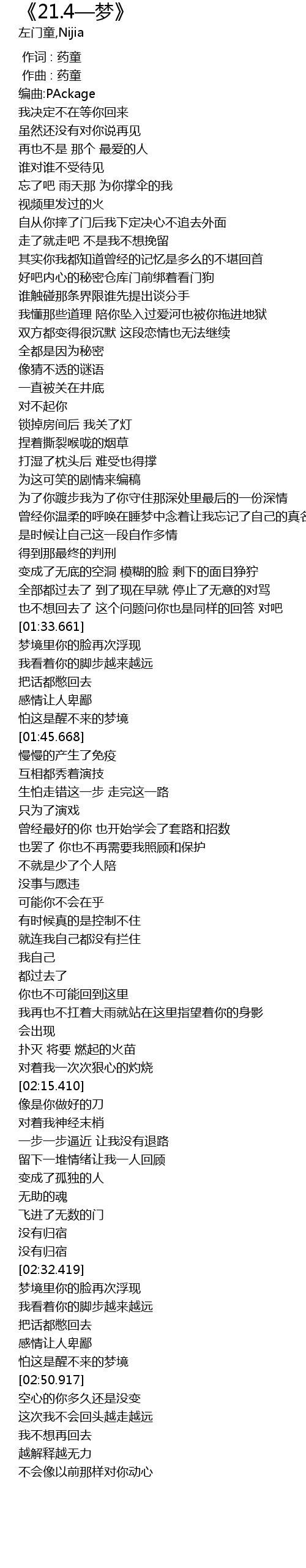 | [01:43.412] | 怕这是醒不来的梦境 |