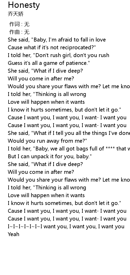 | [01:11.649] | Cause I want you, I want you, I want I want you |