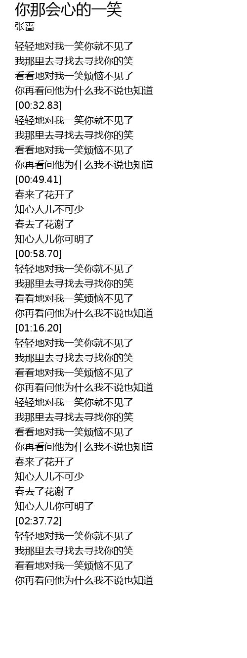 | [02:39.36] | 轻轻地对我一笑你就不见了 |