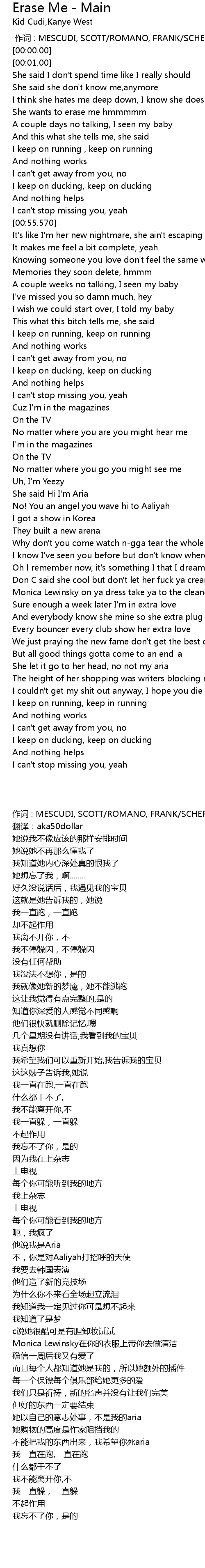 | [00:00.00] | 作词 : MESCUDI, SCOTT/ROMANO, FRANK/SCHEFFER, JAMES/WEST, KANYE |