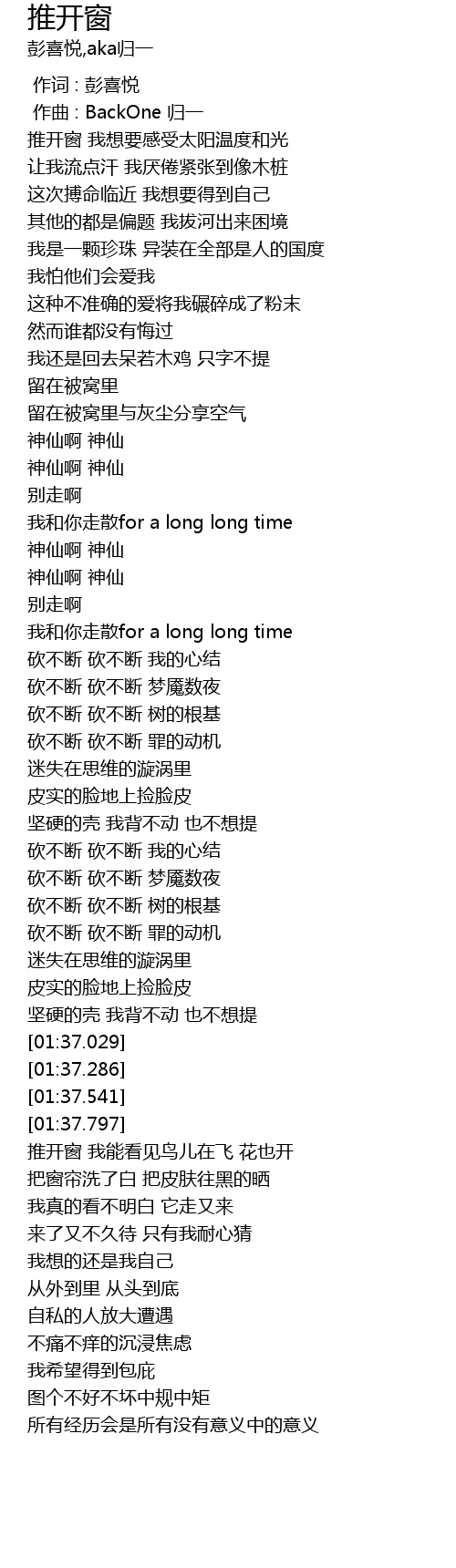 | [01:40.069] | tui kai chuang wo neng kan jian niao er zai fei hua ye kai |