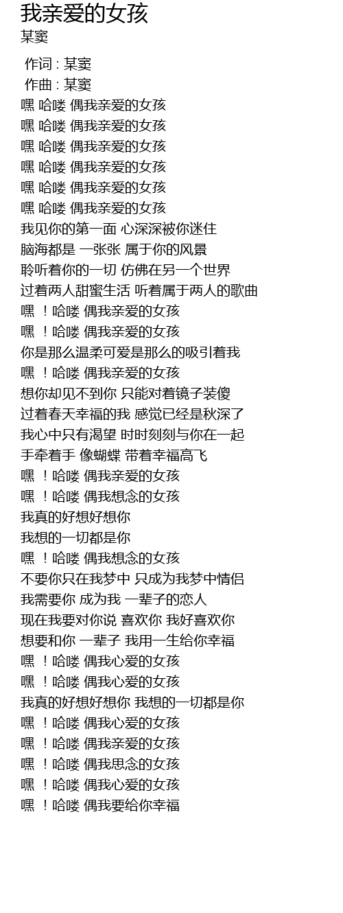 | [00:23.528] | hei ha lou ou wo qin ai de nv hai |