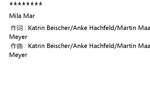 | [00:00.000] | 作词 : Katrin Beischer/Anke Hachfeld/Martin Maaf Kirchner/Soeren Meyer |